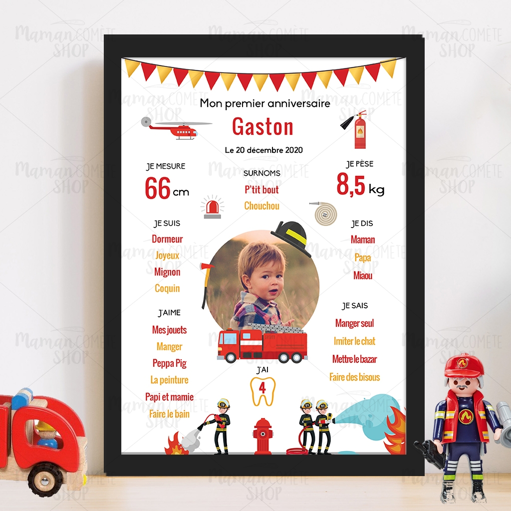 affiche_personnalisee-premier-anniversaire-cadre-idee-cadeau-offrir-theme-pompier-noir
