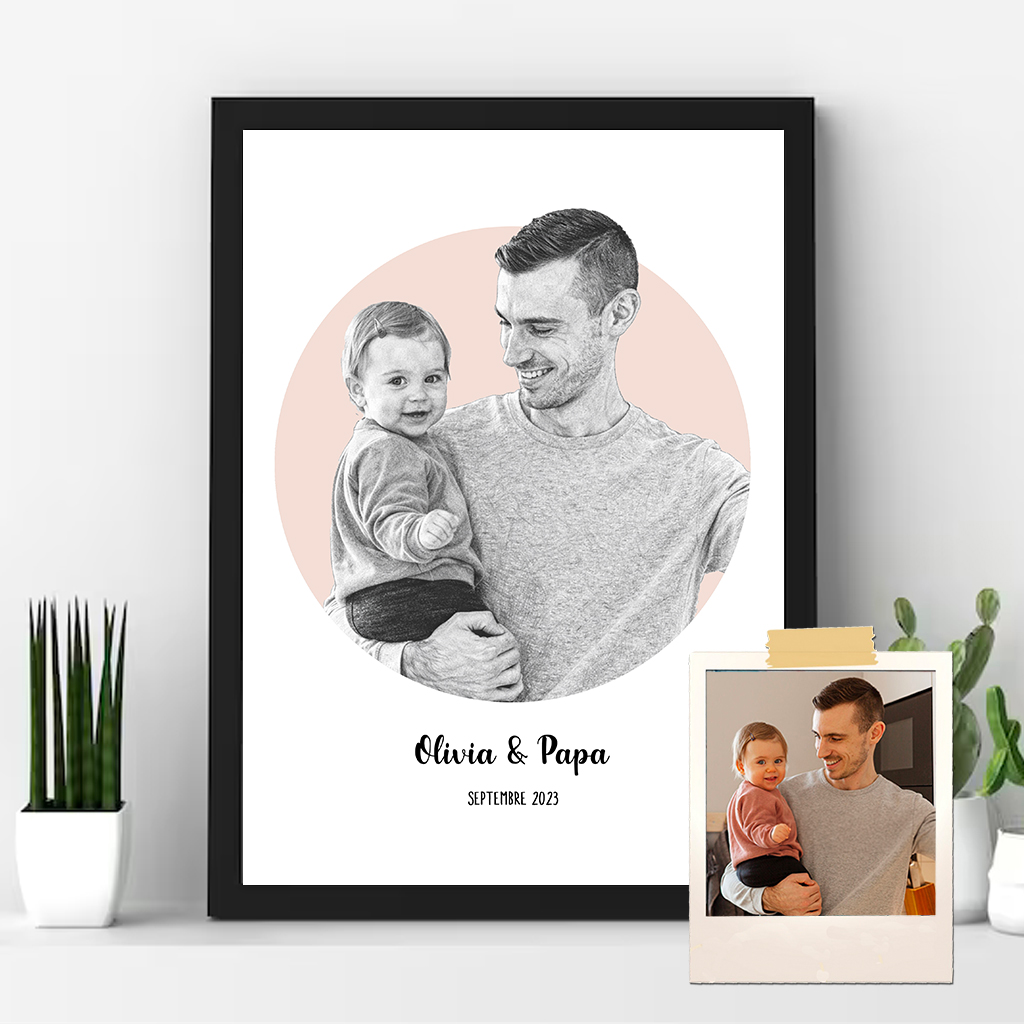 Affiche_portrait_dessin_personnalise_photo_Couple_amis_papa_cadre_noir