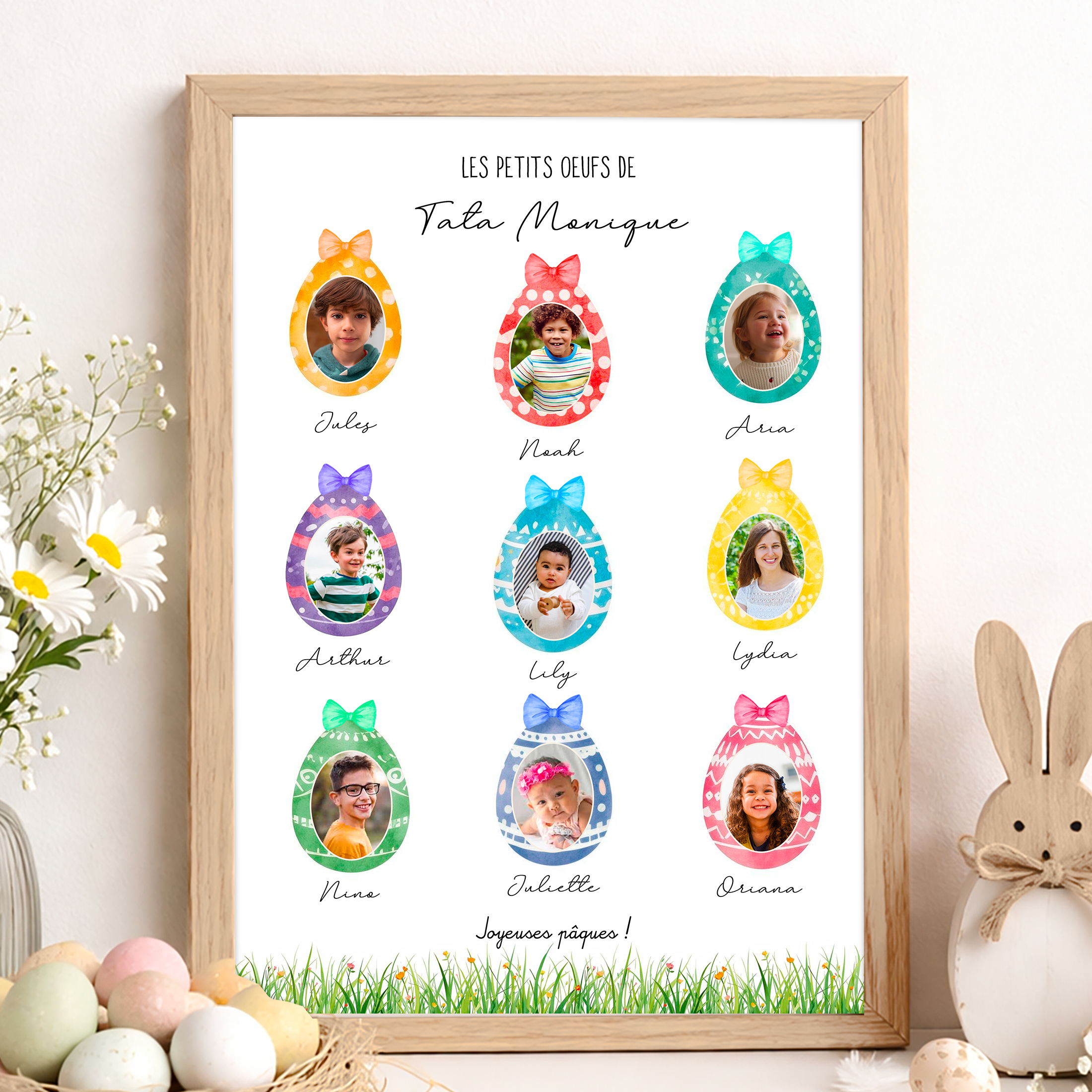 Les petits œufs de Pâques – Affiche personnalisée photos enfants – Papi mamie famille