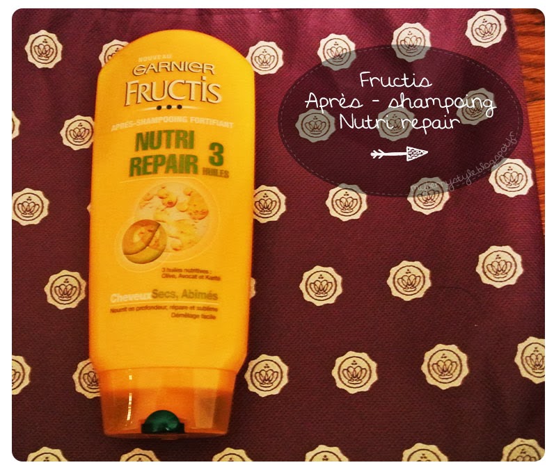 Après shampoing Fructis nutri repair pour les cheveux secs et abîmés. Je ne me passe jamais d’après shampoing, en plus le type de cheveux est parfait pour moi. Et je n’ai pas encore testé cette gamme de fructis ! Contente de ce produit.