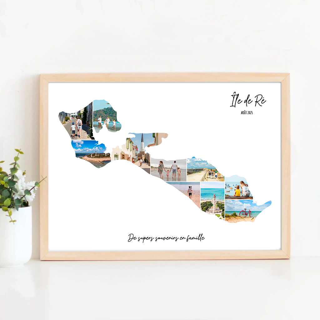 Transformez vos souvenirs de vacances à l’Île de Ré en une œuvre d’art unique avec notre affiche personnalisée de collage photo.