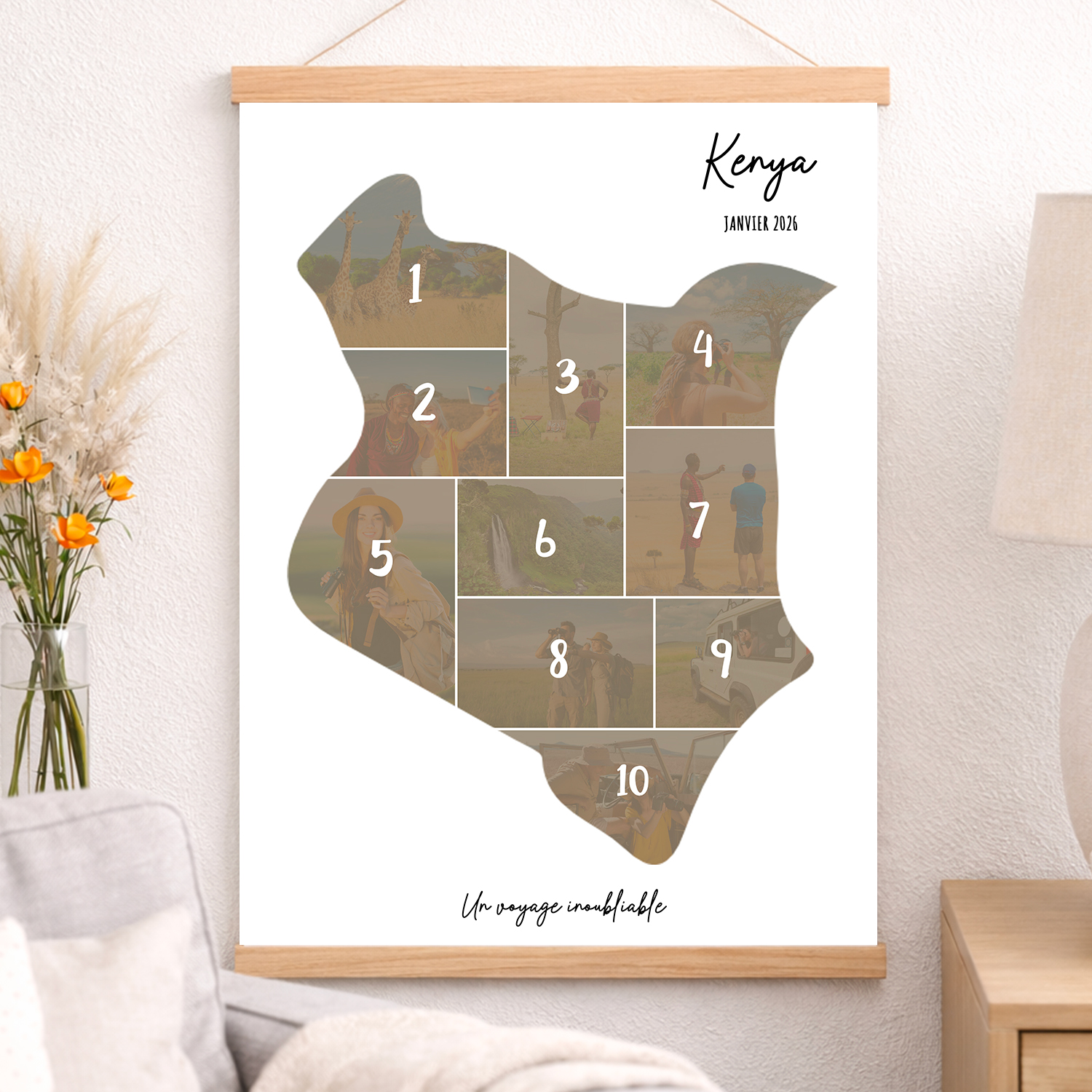 Idéale pour décorer votre maison ou offrir en cadeau, cette affiche met en valeur les moments inoubliables de votre séjour sur ce pays magnifique. Personnalisez facilement en ligne et commandez dès aujourd’hui pour revivre vos aventures kényenne à chaque regard !