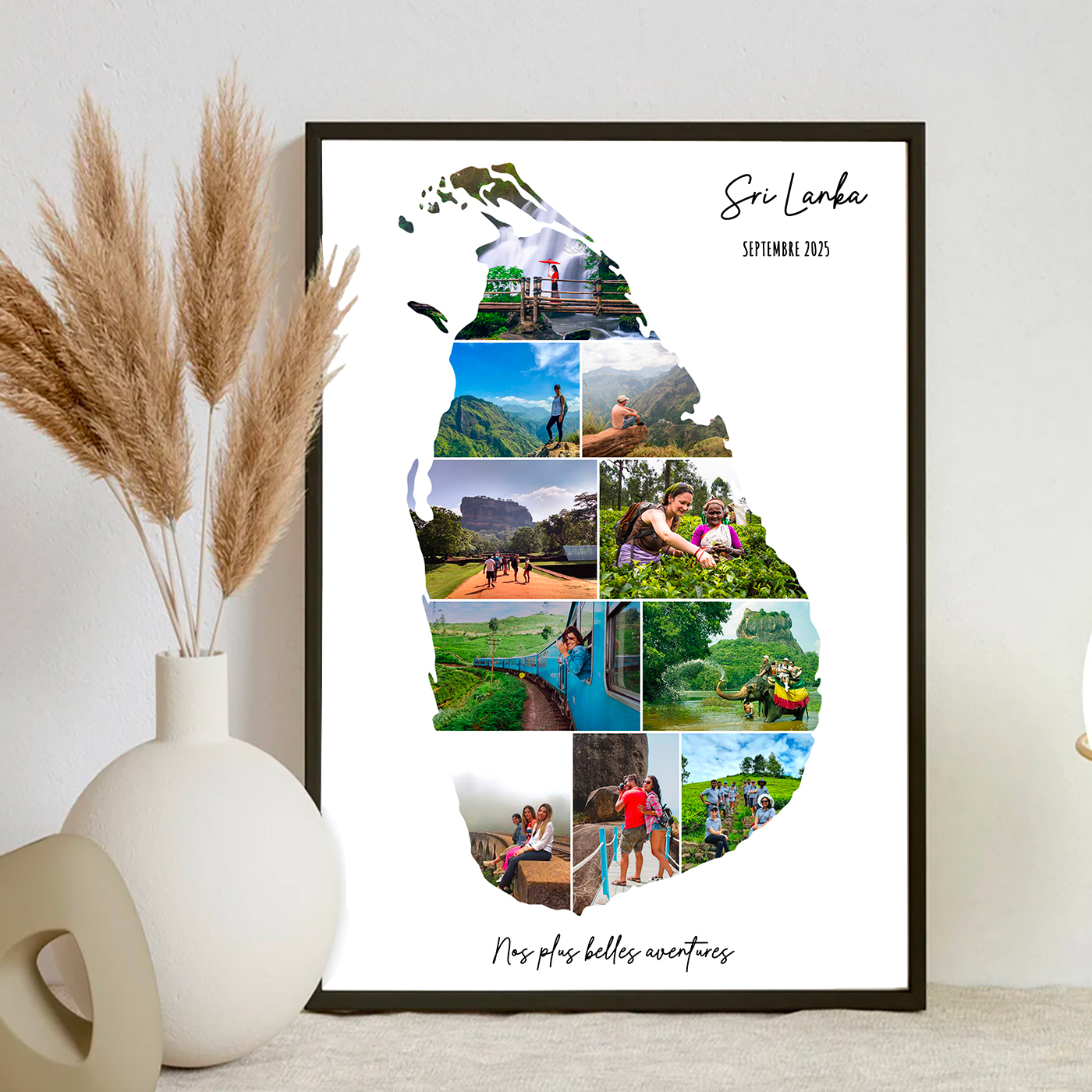 Transformez vos souvenirs de voyage au Sri Lanka en une œuvre d’art unique grâce à notre affiche personnalisée en collage photo.