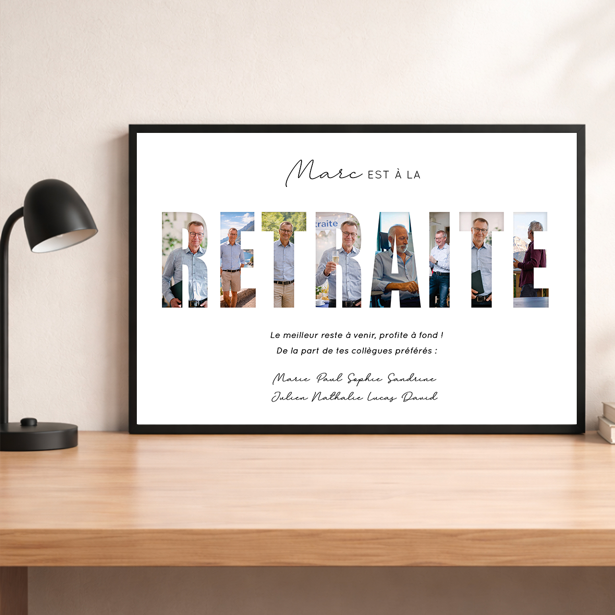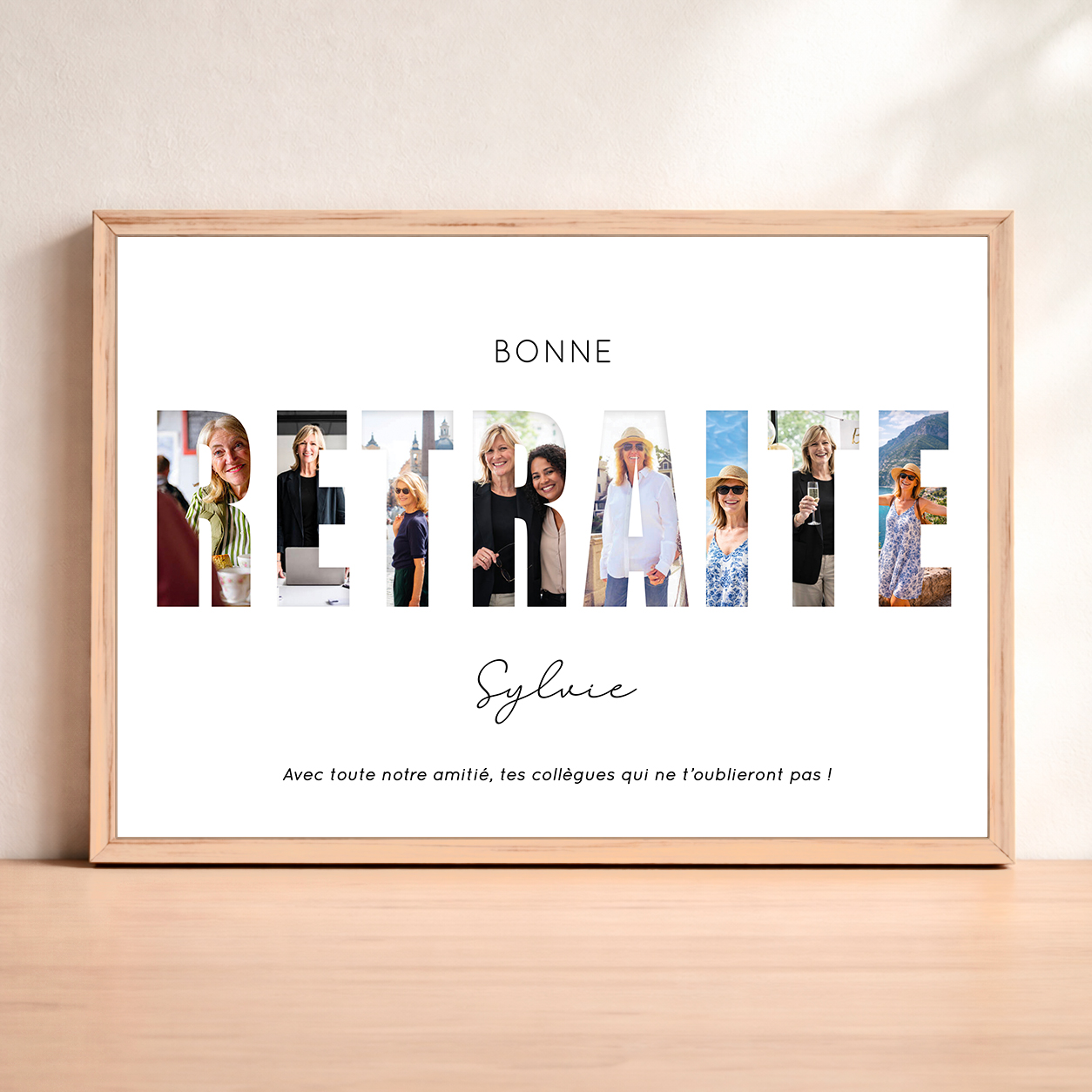 Offrez un cadeau unique et rempli d’émotion avec cette affiche retraite personnalisée avec 8 photos 💛