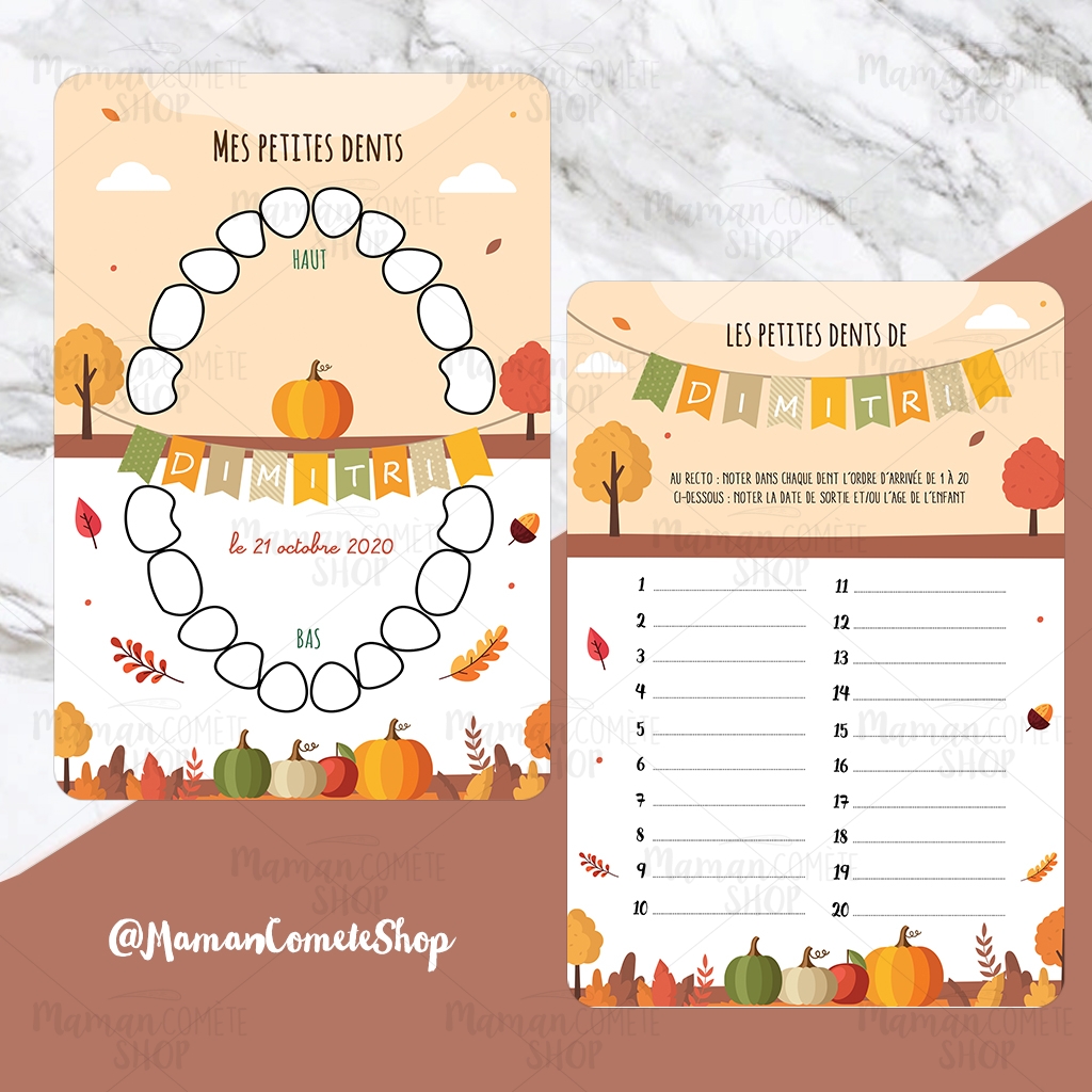 Carte “petites dents” de lait pour garder un souvenir de la sortie ou la perte de ses petites quenottes. Inscrivez l’ordre de sortie directement dans les dents et la date au dos de la carte. C’est une idée de cadeau originale.