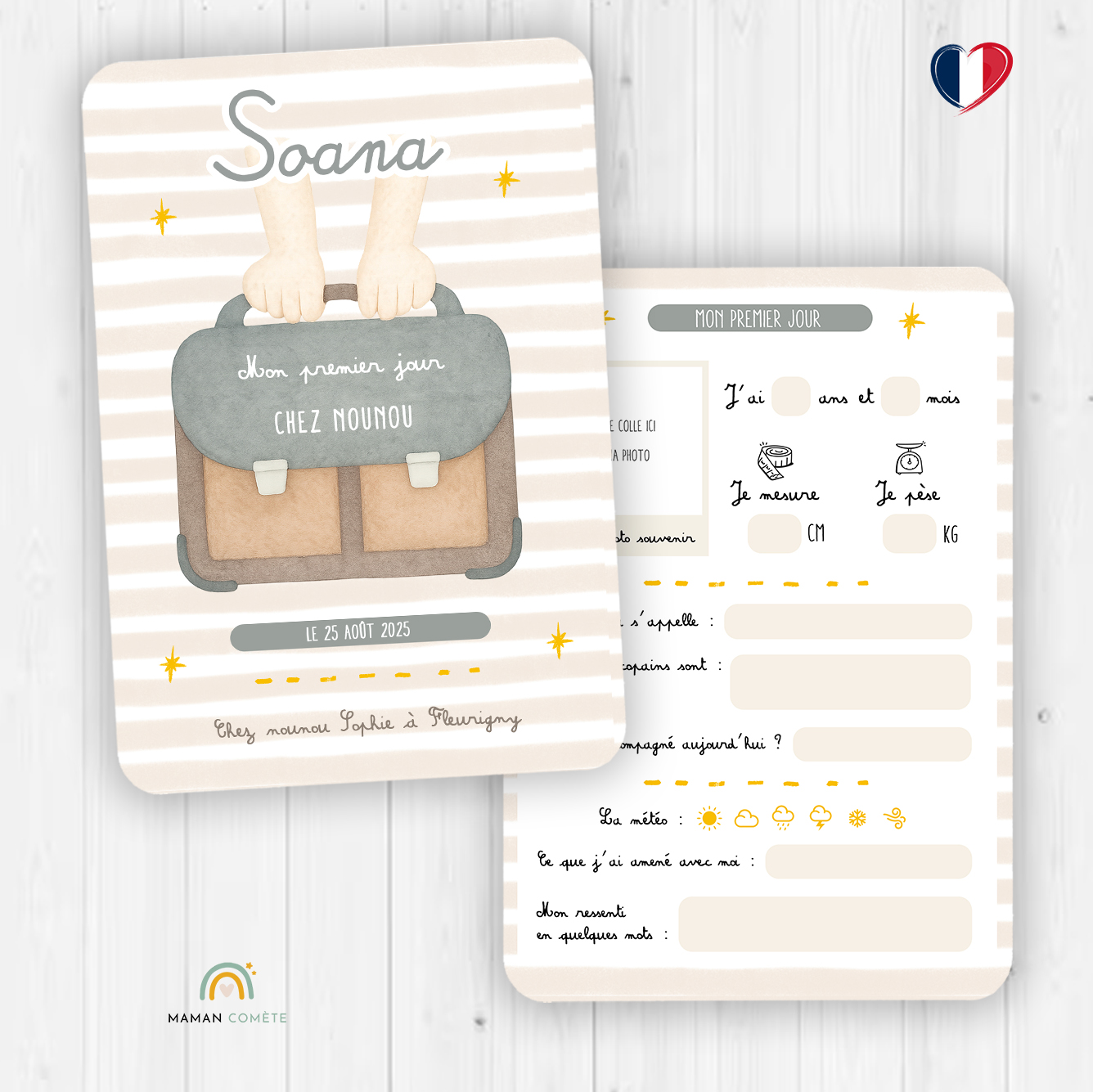 📍 Prénom en grand + mention “Je rentre en…” ou “Mon premier jour”