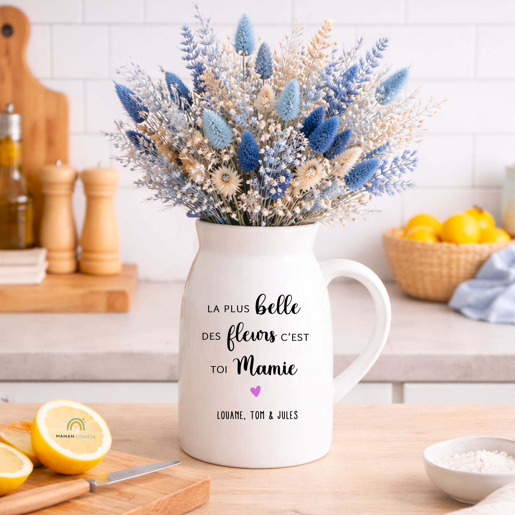 Ce vase style pot à lait est parfait pour accueillir des fleurs fraîches ou séchées et apporter une touche douce à la décoration 🌿 Un cadeau idéal pour une maman, mamie, marraine, maîtresse ou nounou, pour la fête des mères, un anniversaire ou simplement pour faire plaisir 💐