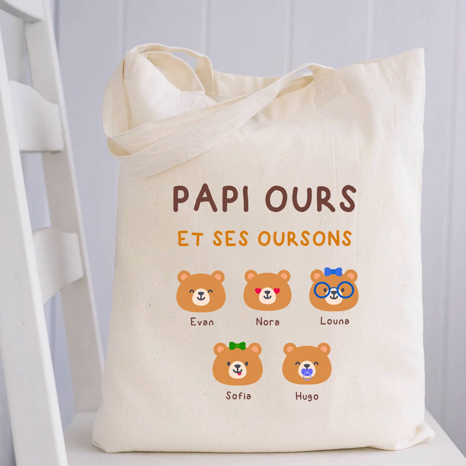 👜 Totebag personnalisé “Papi Ours et ses oursons”