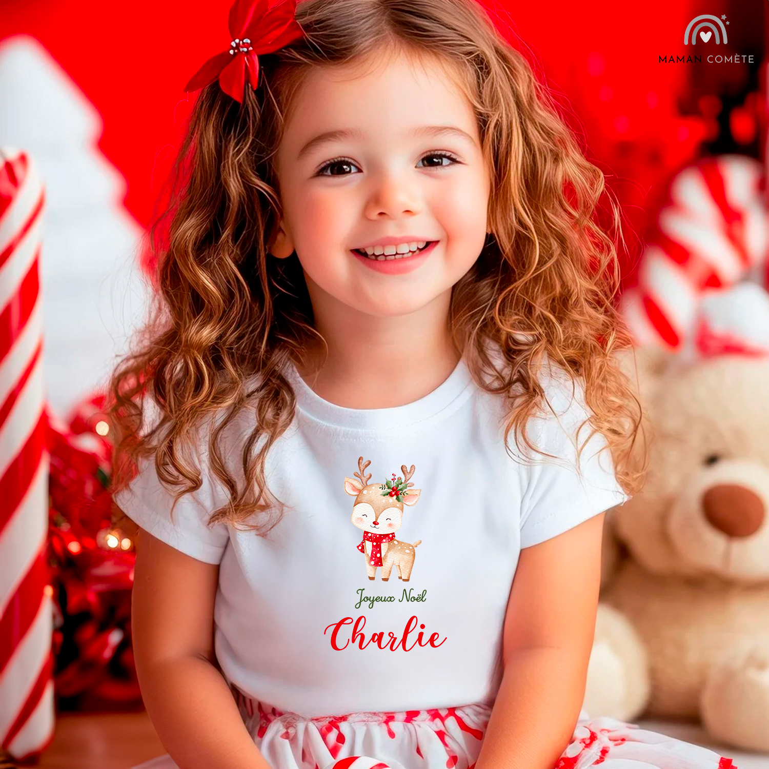 Deux versions au choix : renne fille ou renne garçon, avec ou sans année, et le prénom de votre petit trésor 💖
