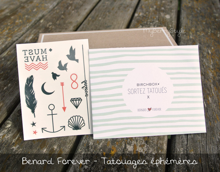 En ce moment c’est de nouveau la grande mode des tatoos éphémères, du coup ça m’avait donné envie d’en acheter, mais BirchBox m’a devancée ! Oui on peut dire c’est pour les enfants blablabla mais moi j’ai gardé mon âme d’enfant et je vais bien m’amuser avec ça ! Peut être que ça me donnera envie d’un vrai tatouage, mais j’en doute, j’ai trop d’aprioris négatifs à ce sujet même si je trouve ça très joli sur les autres !